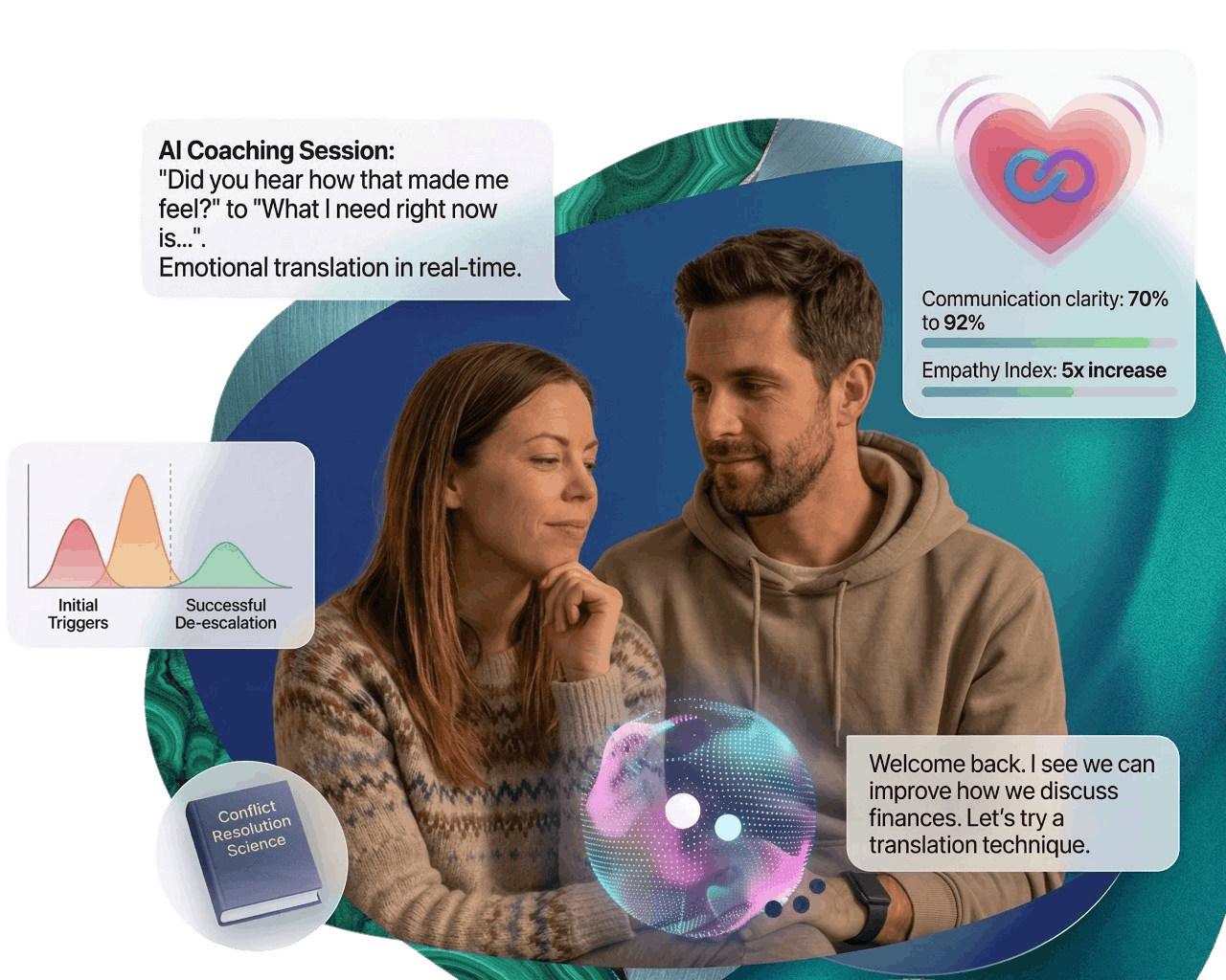 Proprietary AI assesses your relationship dynamics, predicts triggers, and provides tailored coaching tailored to your exact bond.